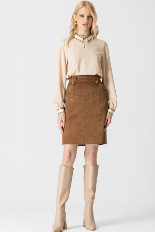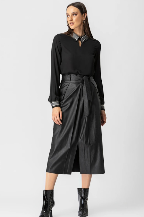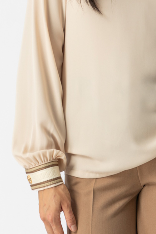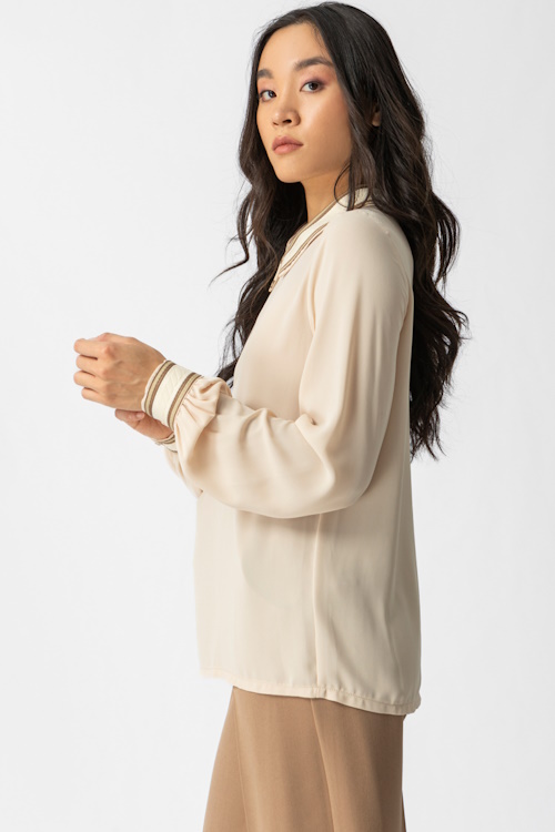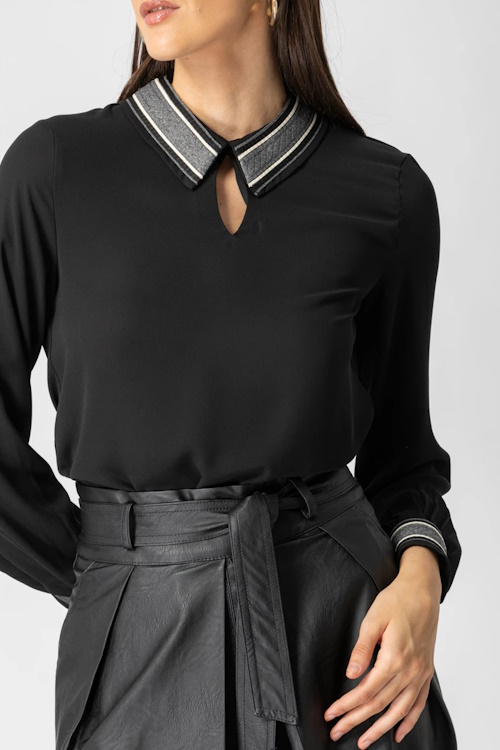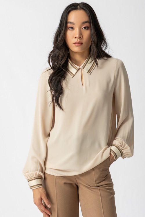 Μπλούζα σε ύφασμα ζορζέτα με δίχρωμο γιακά. Κομψή και διαχρονική.