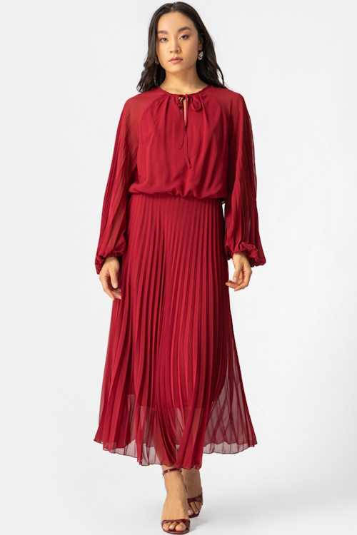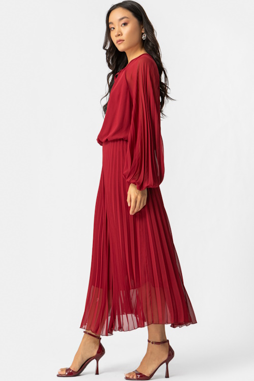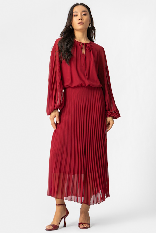 Φόρεμα μουσελίνα πλισέ, διαθέτει ελαστική φόδρα, λάστιχο στην μέση και στα μανίκια.